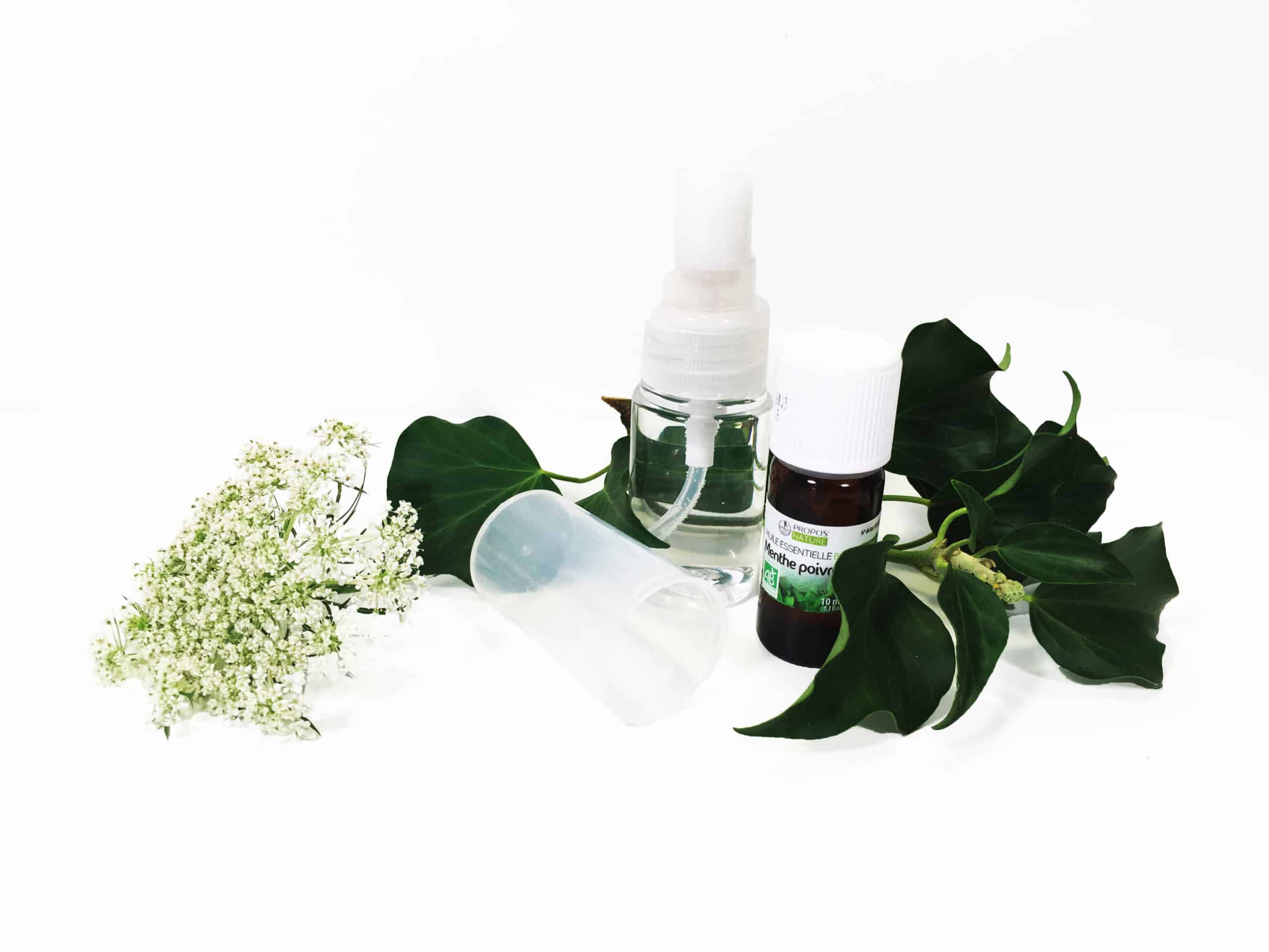 Il vous faudra simplement vous armer d’un flacon à spray, aussi communément appelé « pshit pshit », d’eau et de quelques gouttes d’huile essentielle de Menthe.